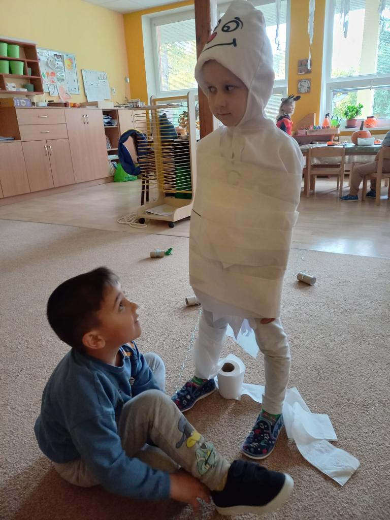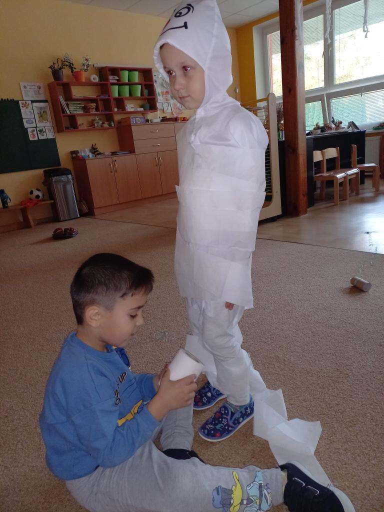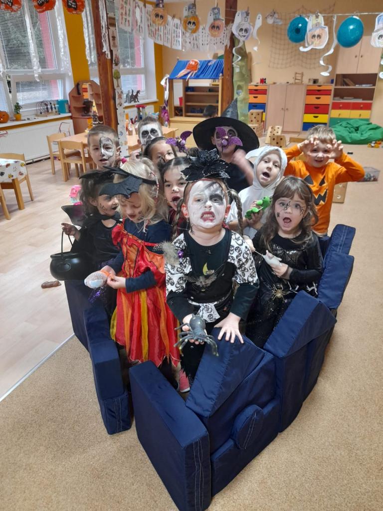 Pro děti si paní učitelky připravily spoustu her a zábavy ve strašidelném stylu. Děti se převkékly do kostýmů.