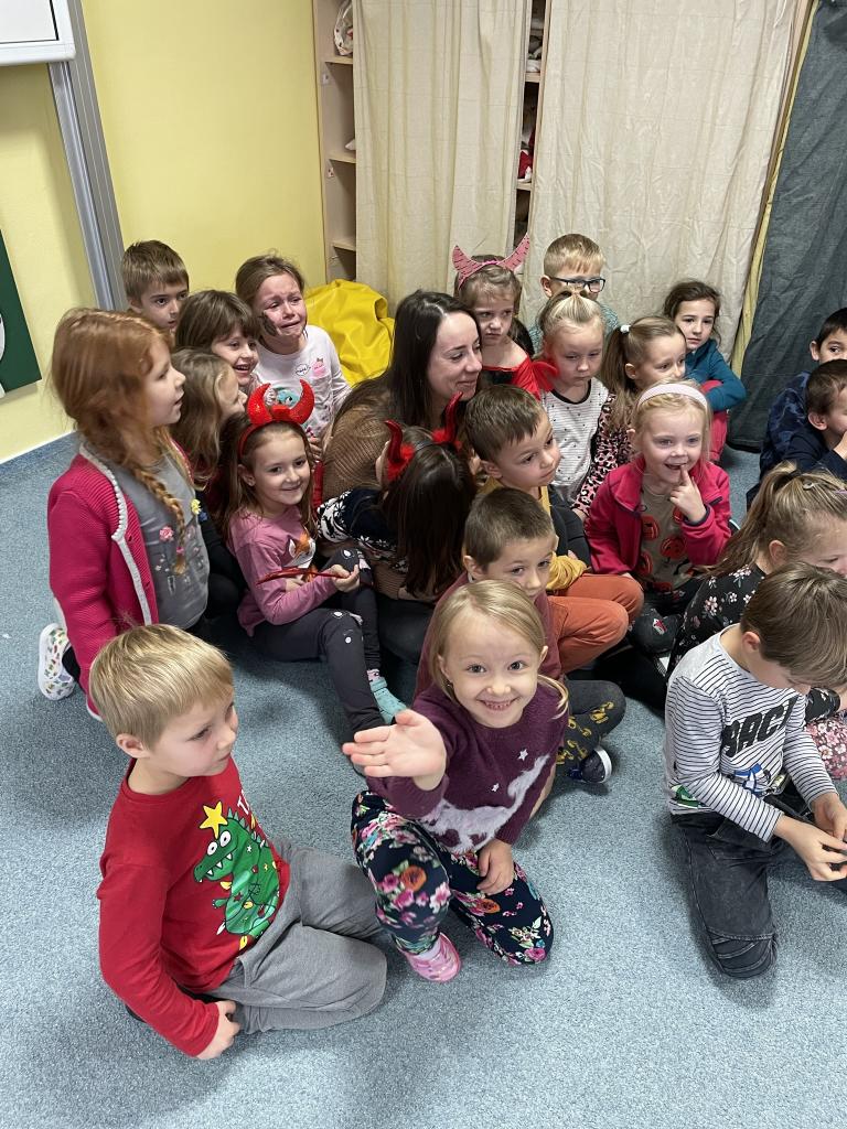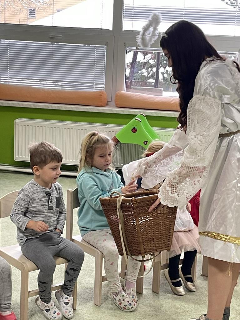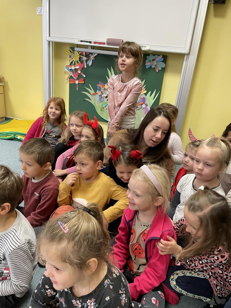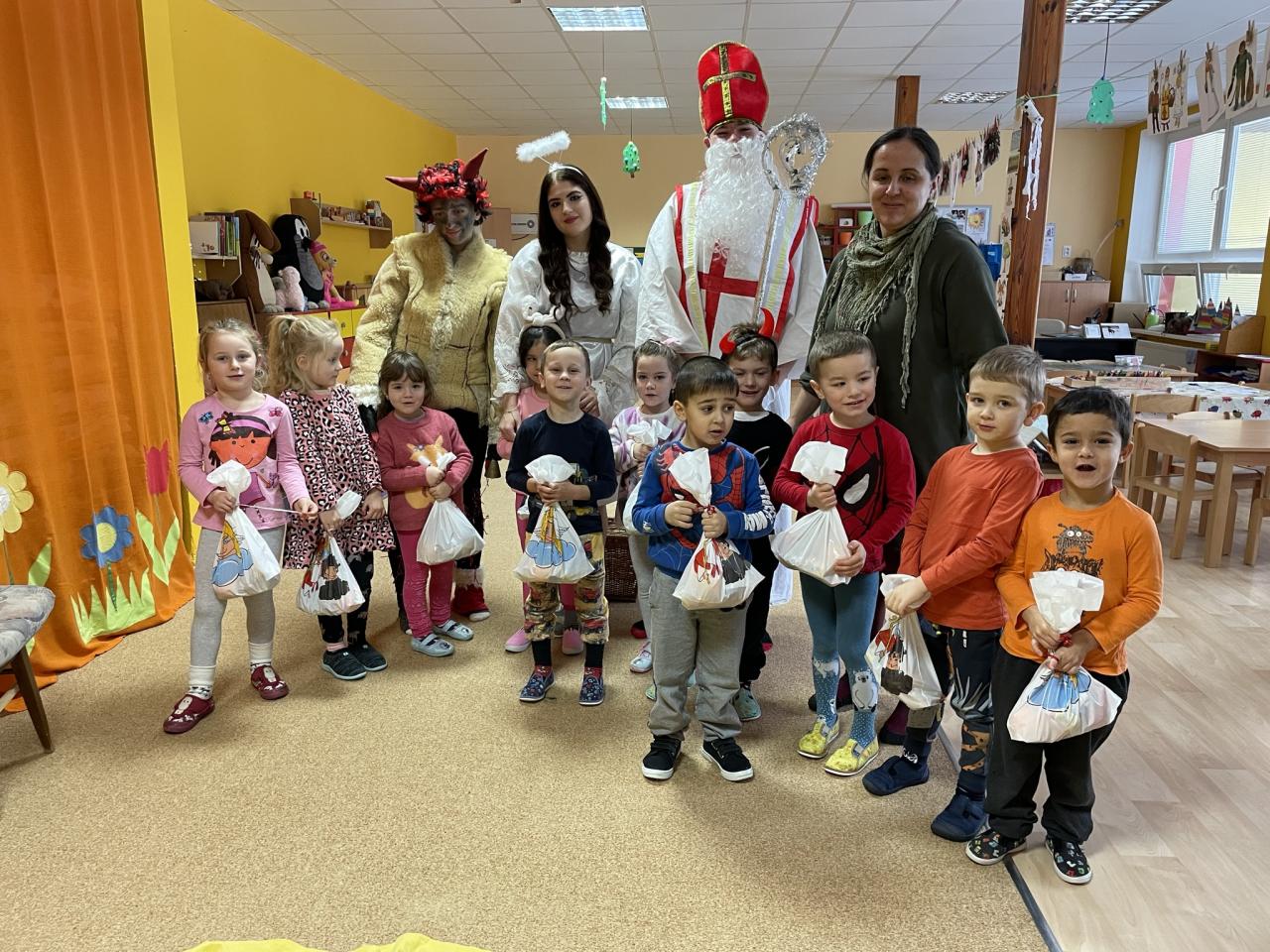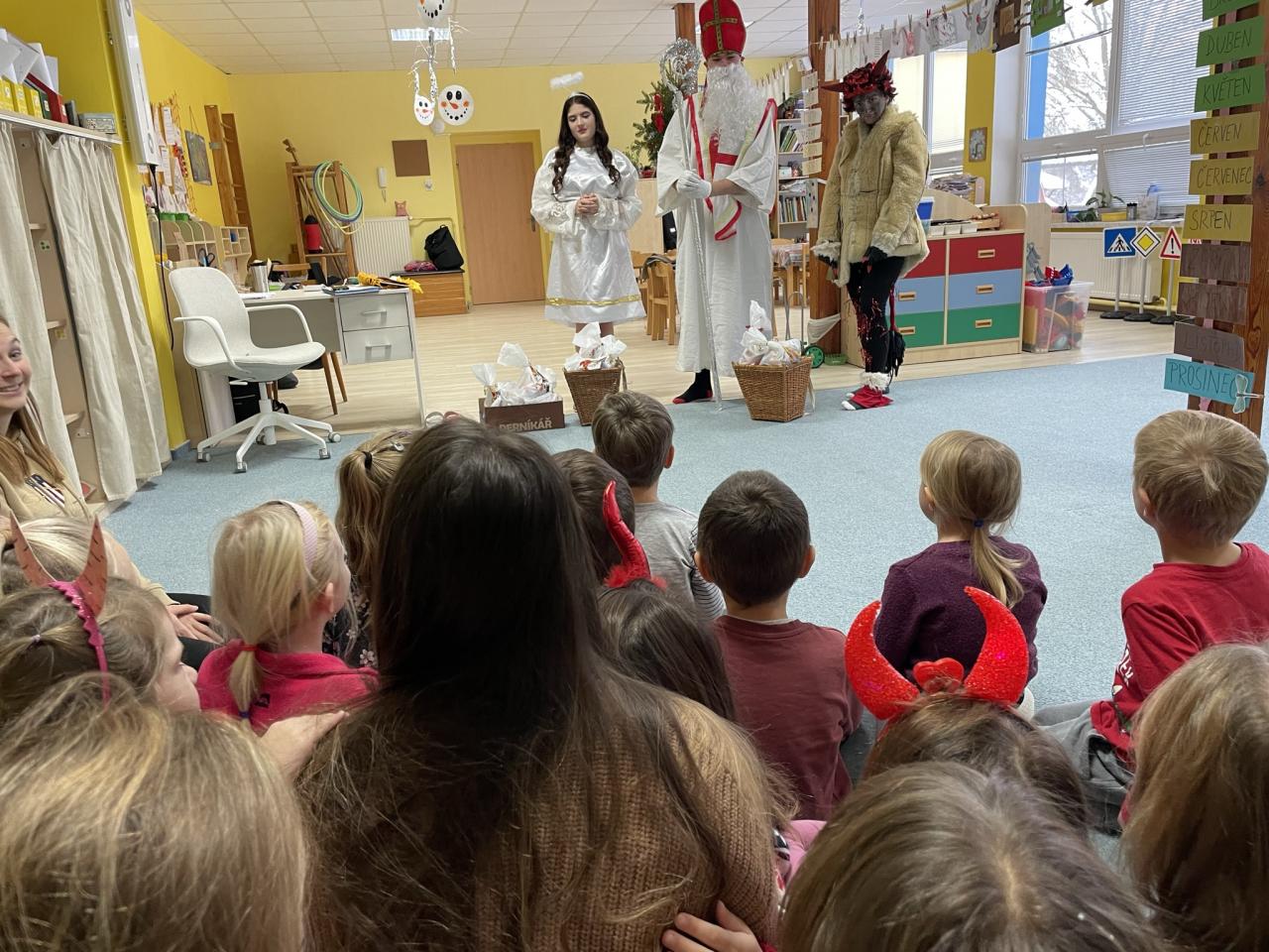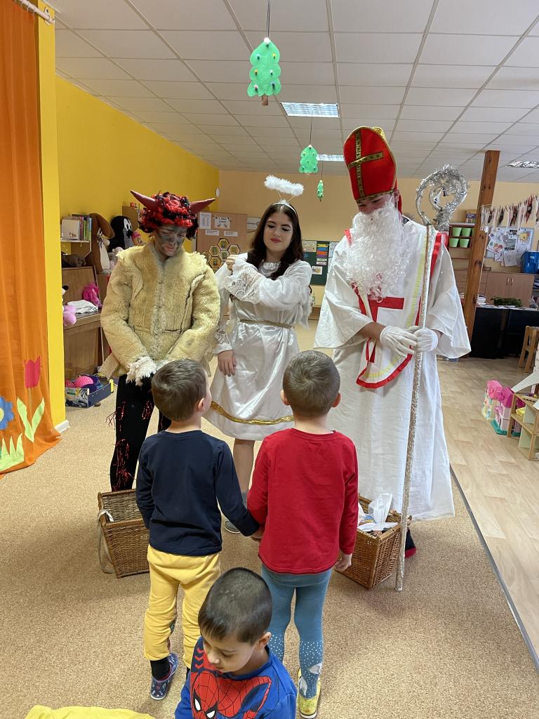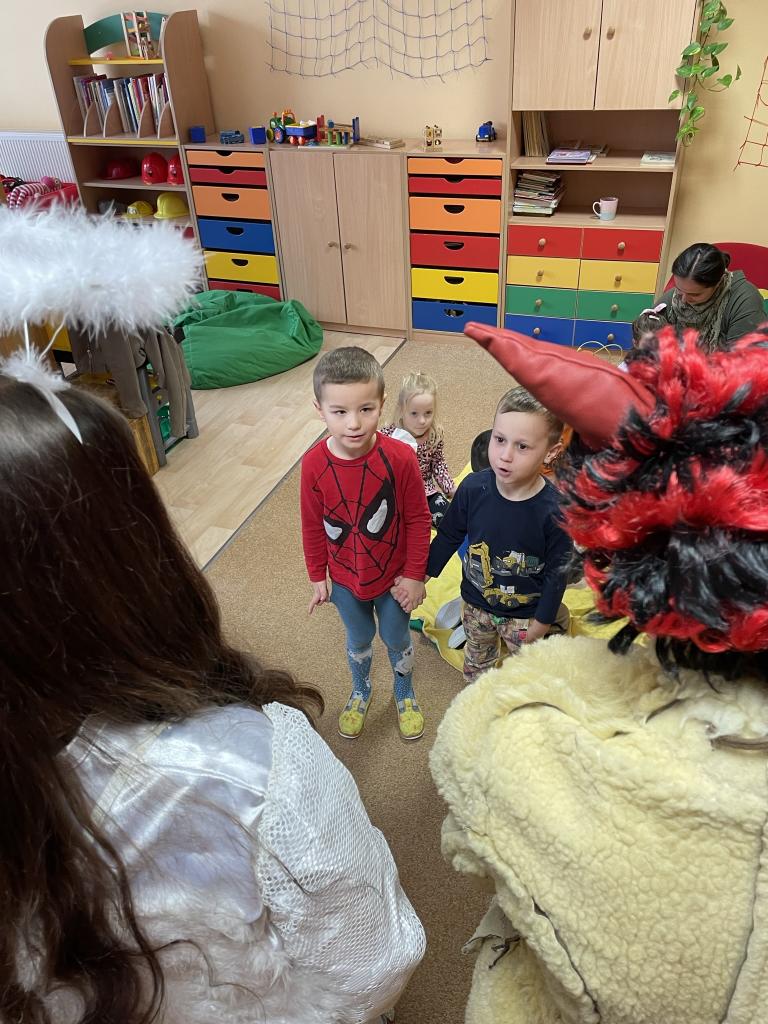 Jako již tradičně k nám přišli kouzelné bytosti. Tentokrát byt čert velice krotký, možná i proto, že tolik hříšníků v naší školce nenašel. Děti měly připravené básně a písně, a proto také obdržely spoustu sladkých i zdravých dobrůtek. Celé dopoledne si velice užily.