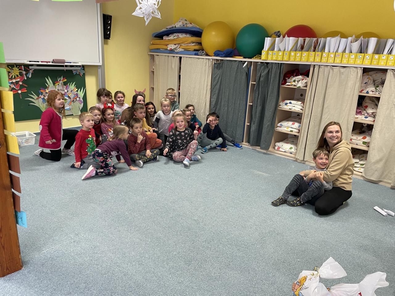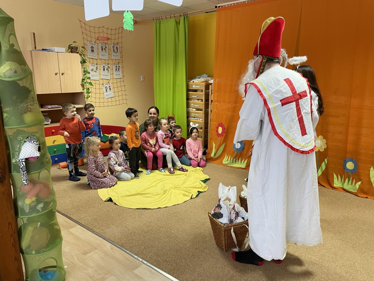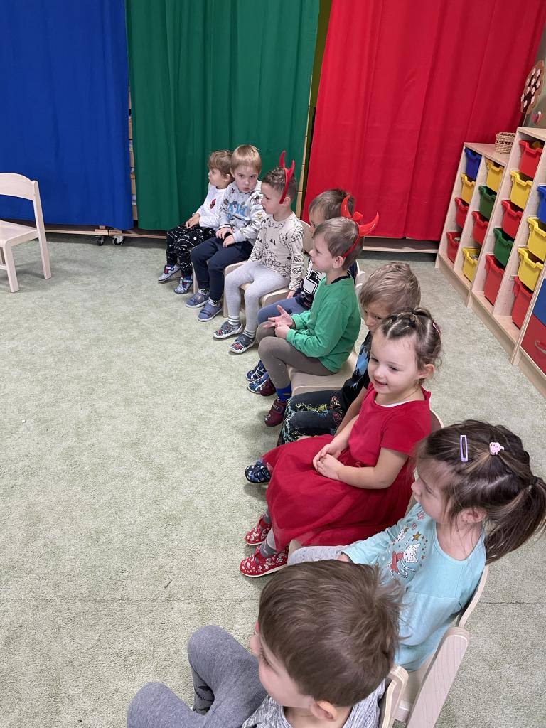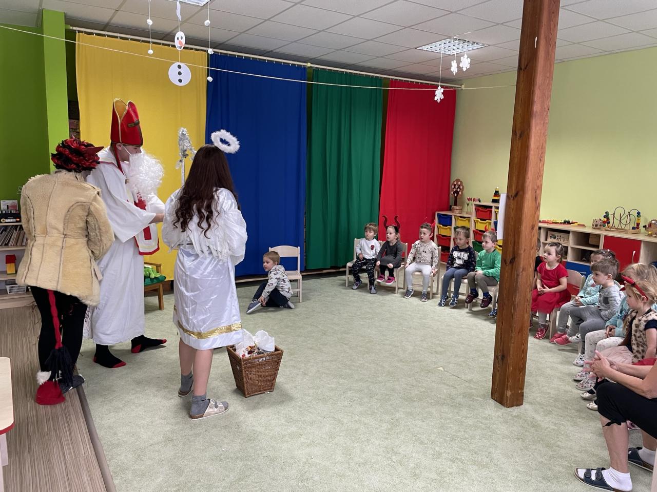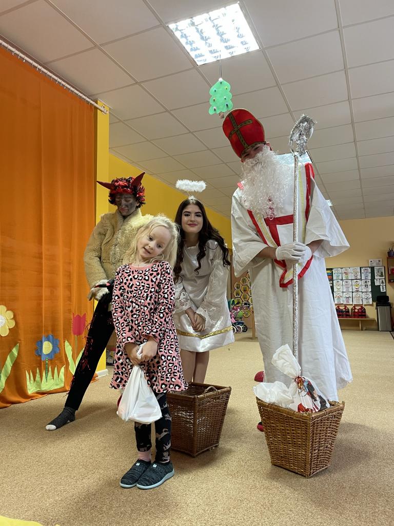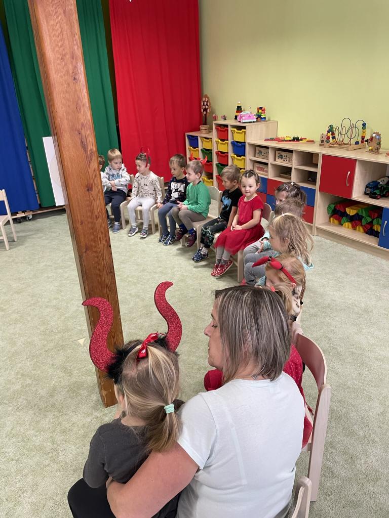 Jako již tradičně k nám přišli kouzelné bytosti. Tentokrát byt čert velice krotký, možná i proto, že tolik hříšníků v naší školce nenašel. Děti měly připravené básně a písně, a proto také obdržely spoustu sladkých i zdravých dobrůtek. Celé dopoledne si velice užily.