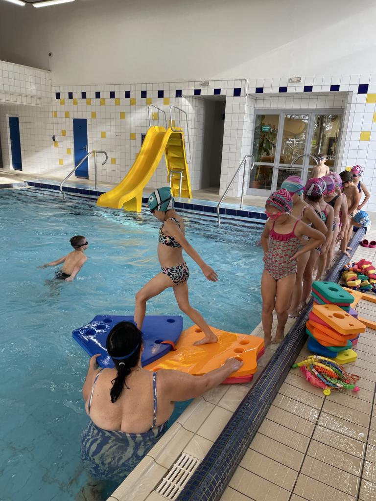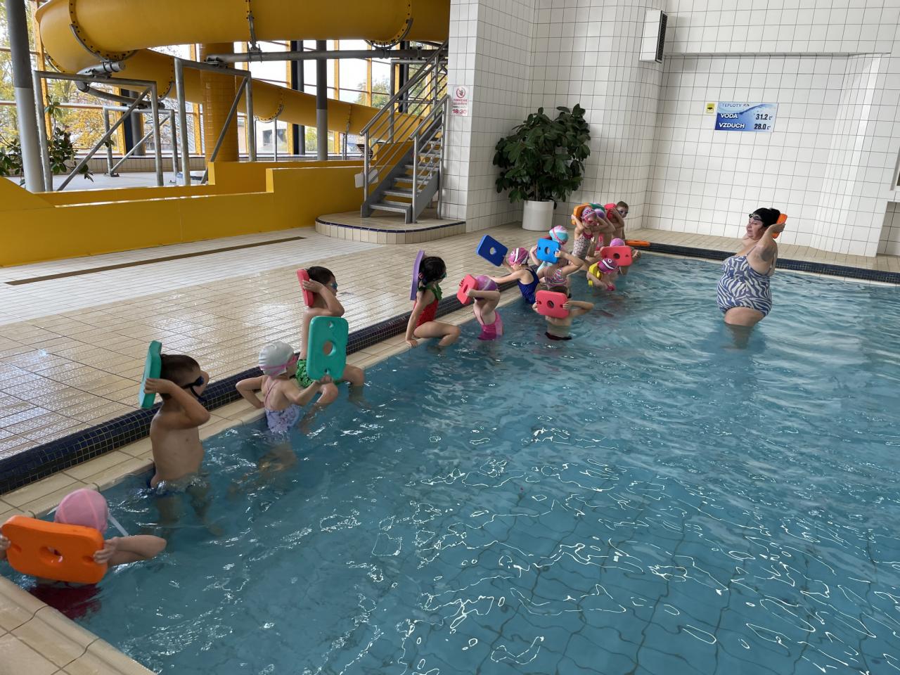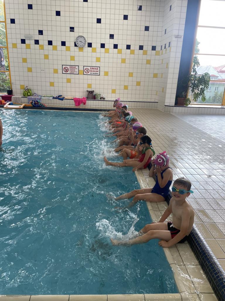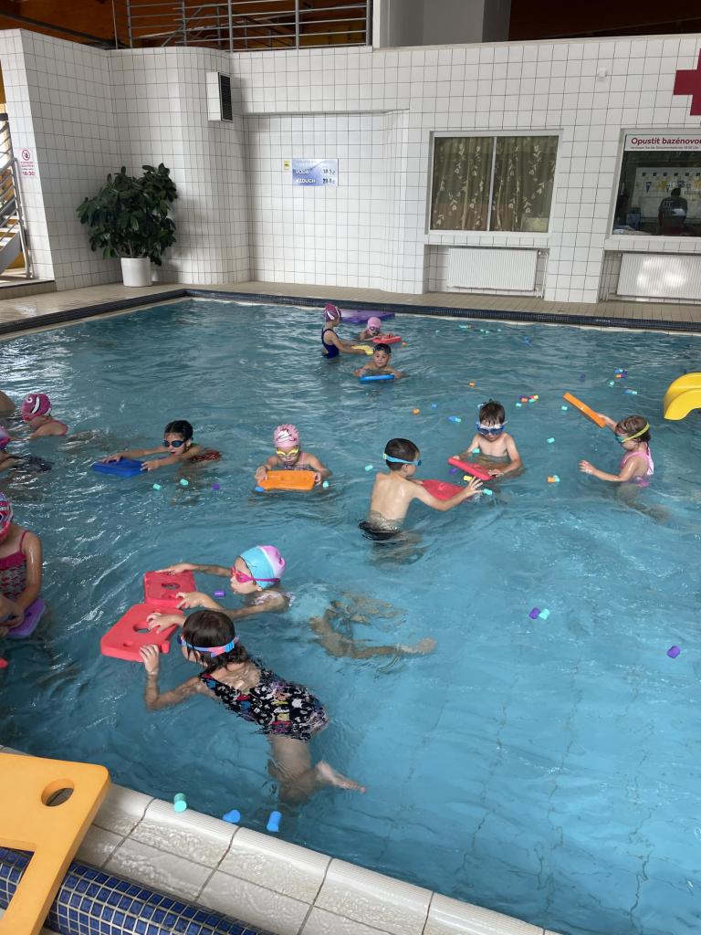 Od 4. října se předškolní děti účastňují plaveckého výcviku v Městském bazénu v Mariánských Lázních. Trenérkou plavání je paní Veronika Paterová, která má dlouholetou praxi a zaměřuje se především na miminka a předškolní děti. Našim plavcům to velice jde i přes prvotní strach z neznámého prostředí a vody. Paní instruktorka se zaměřuje převážně na to, aby si děti vybudovaly od počátku k vodě kladný vztah. Její strategie tkví v tom, udělat hodinu plavání vždy zábavnou a pestrou, aby se předškoláci neměli šanci ani na minutu nudit.