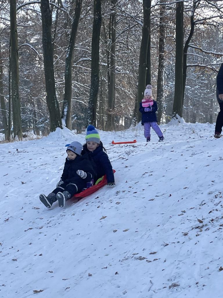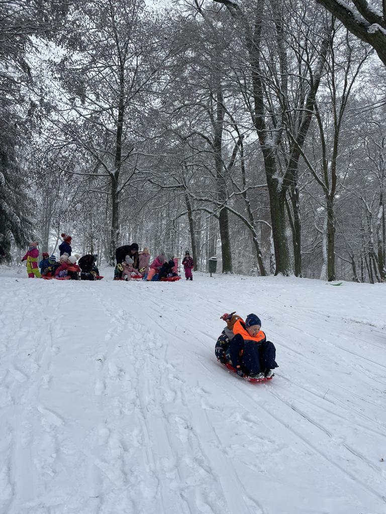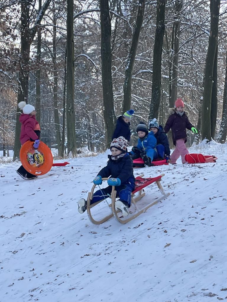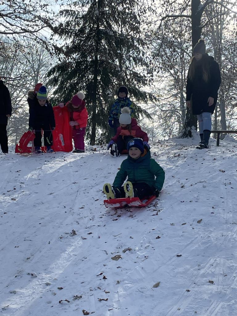 Pravidelně jsme s dětmi chodili na kopec- sáňkovat, bobovat a dovávět. Také jsme stavěli na zahradě sněhuláky, či děti jen tak sledovaly potelující sníh z okna z pohodlí školky. Budeme si přát toto přesně zažít ještě v lednu a únoru 2024.