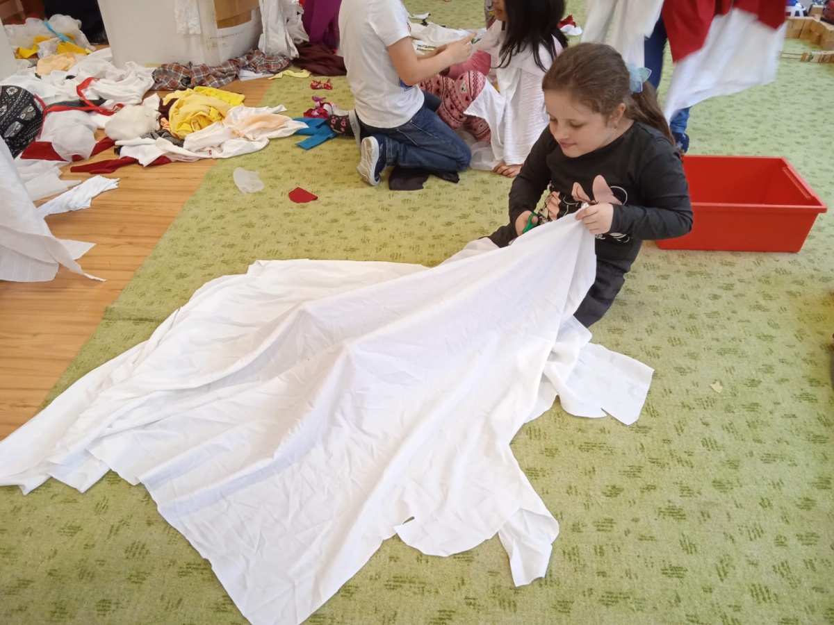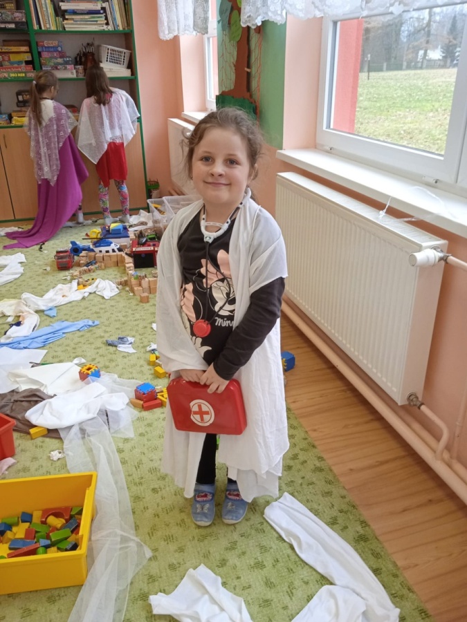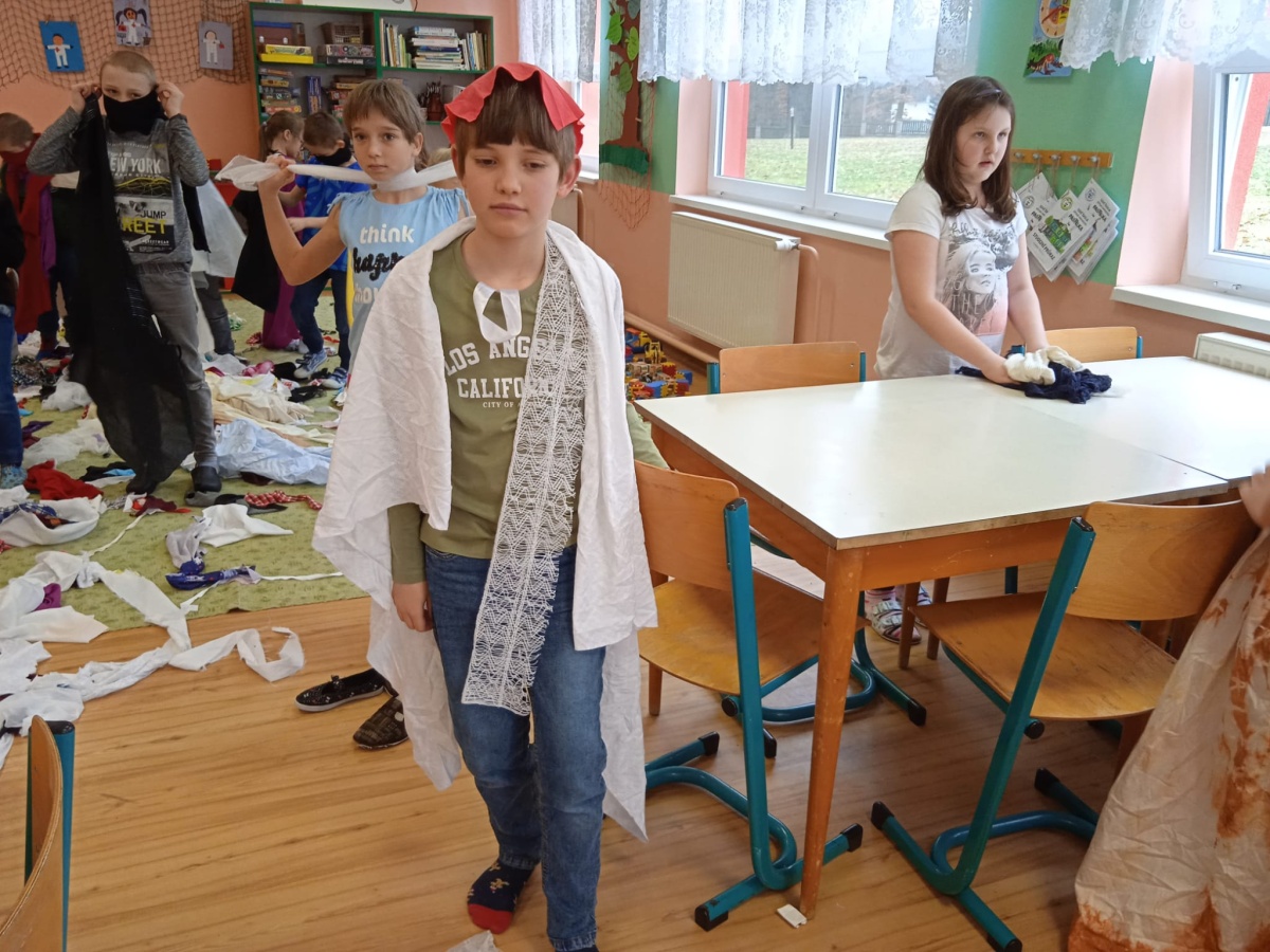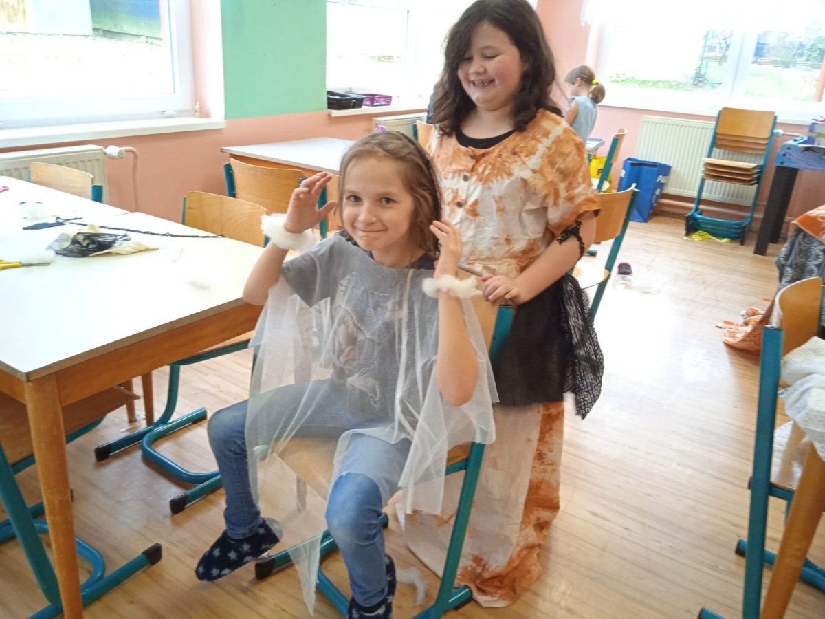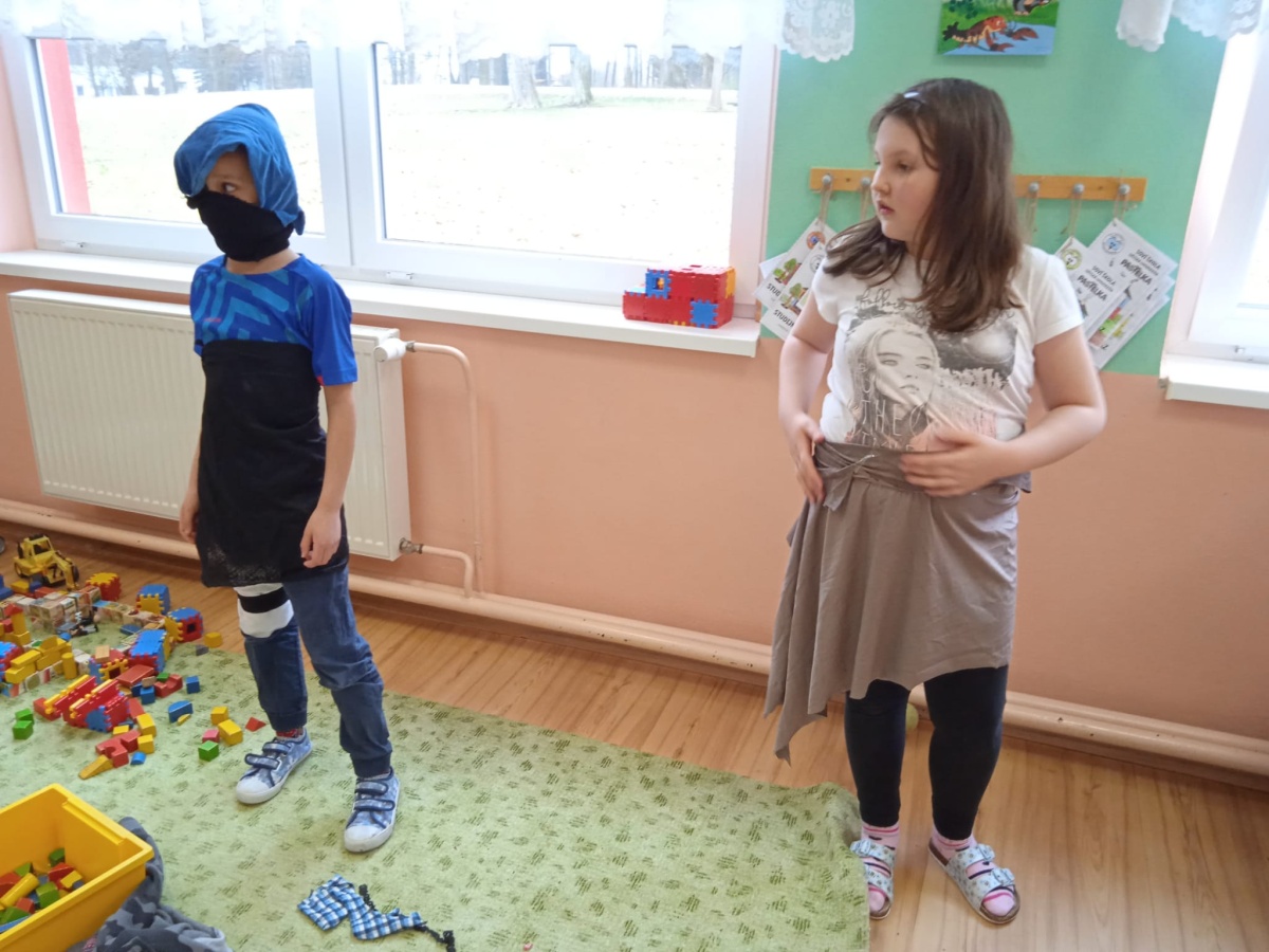 Dnes jsme ke hraní nepotřebovali žádné hry ani hračky. Stačila nám krabice plná látek. Vytvářeli jsme podle své vlastní fantazie různé převleky pro sebe nebo pro kamarády. A že z toho ale vznikly nádherné modely. 😊