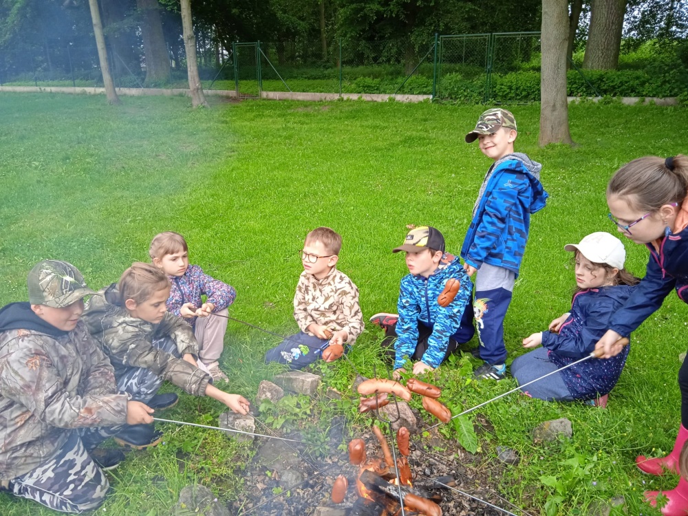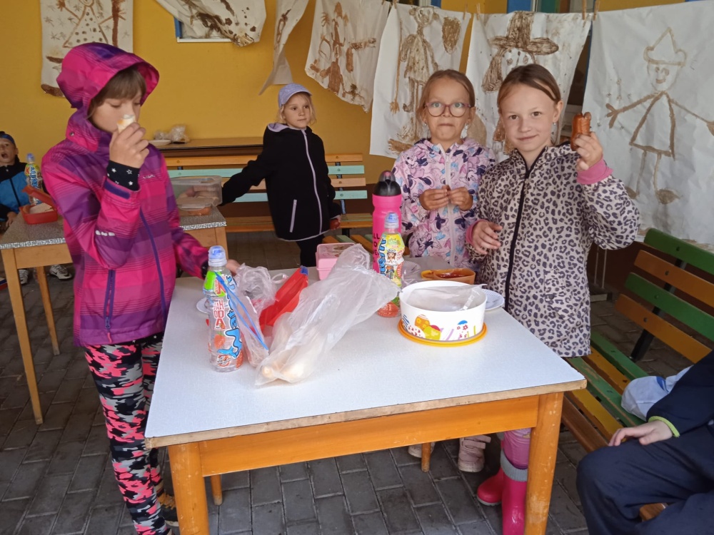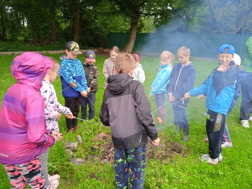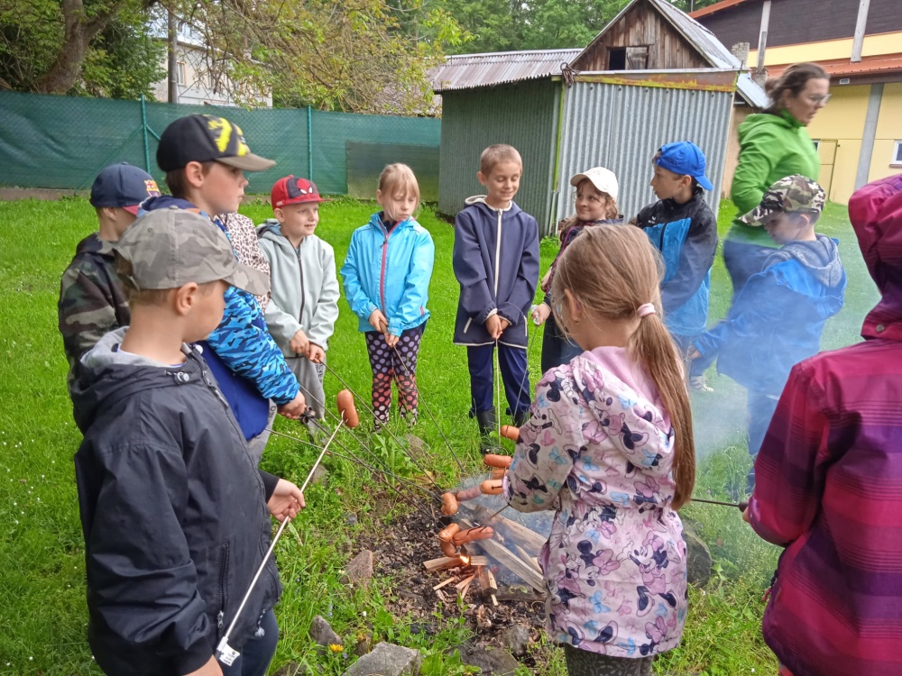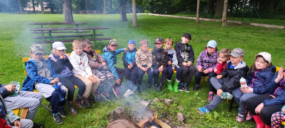Vypadalo to, že bude pršet, ale nebe se umoudřilo a tak jsme se mohli vydat plnit úkoly na naší oblíbenou stopovanou. Po návratu z parku nás čekal oheň a opékání špekáčků, párků a klobás. Moc jsme si všichni pochutnali. A protože nám počasí přálo, zbyl i čas na zpívání u ohně.