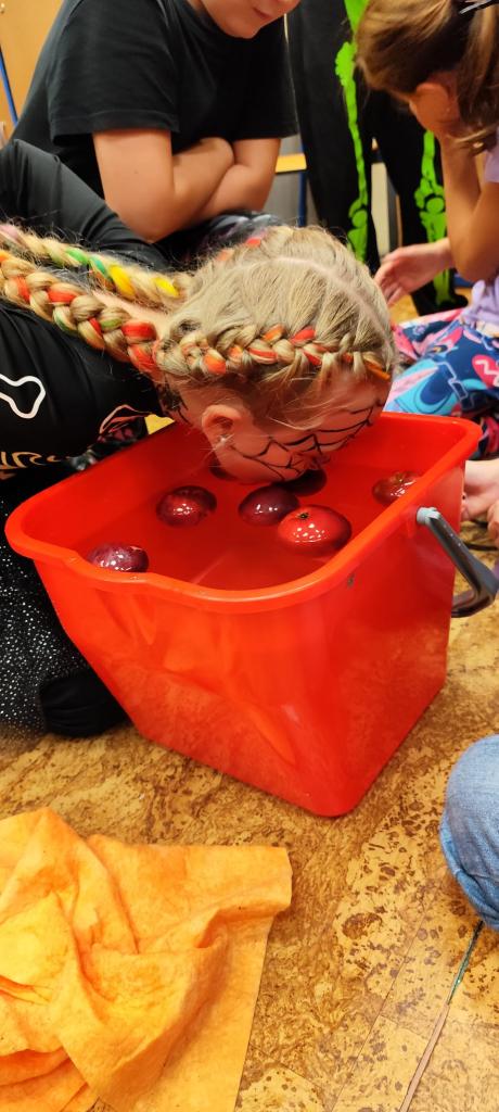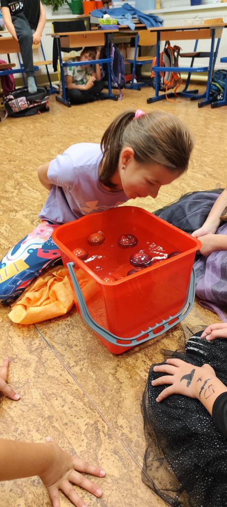 Letošní čtvrťáci si už potřetí užili Halloween společně se svými kamarády přímo ve třídě! Soutěží a zábavy bylo dost, třeba: kdo sní nejrychleji donut, zavěšený na provázku, samozřejmě s rukama za zády… nebo lovení jablek ústy z kbelíku s vodou, opět bez pomoci rukouJ…Celkově zvítězila děvčata nad chlapci, ale to je jen dílčí výsledek v celoročním klání!!!