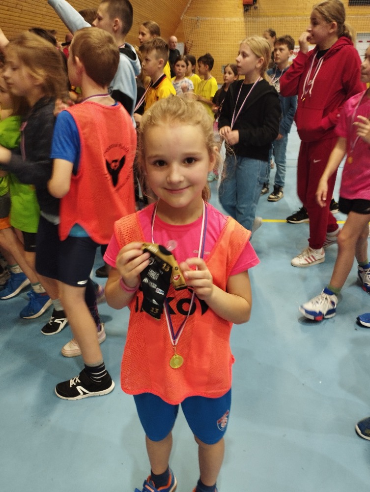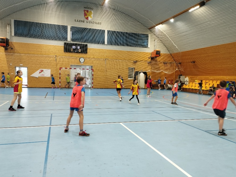Ve středu 10. dubna 2024 se naše škole opět zúčastnila školní ligy v miniházené ve sportovní hale Lázně Kynžvart. Tentokrát soutěžilo hodně týmů, proto se vynechala společná rozcvička, což dětem vůbec nevadilo. Naše starší děti po převlečení nastoupily ihned do prvního zápasu a rychle se dostaly do tempa. Bylo vidět, že už jsou to mazáci a ví, co mají dělat. Naše škola vyslala dva týmy mladších žáků, kteří odehráli více zápasů, ale únava na nich nebyla znát. Děti miniházená baví a na turnaj vždy rády jedou. Tentokrát se vyhlašovala speciální cena, kterou obdržely 4 děti, které se líbily nejvíce při vzájemných zápasech. Hráče vybírala děvčata, která hrají házenou v oddílu TJ Sokol Lázně Kynžvart. Mezi vybranými byla i Johanka Rolková, která měla z ceny ohromnou radost.